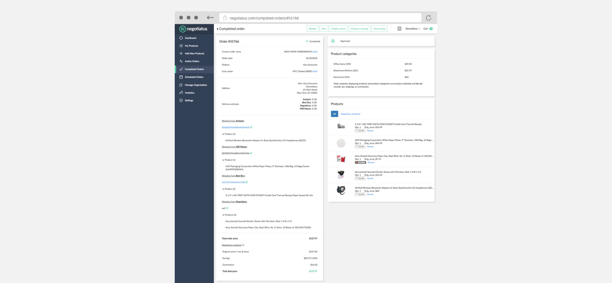 Negotiatus is a one-stop shop for companies to purchase all their office necessities, from kitchen snacks to office furniture.