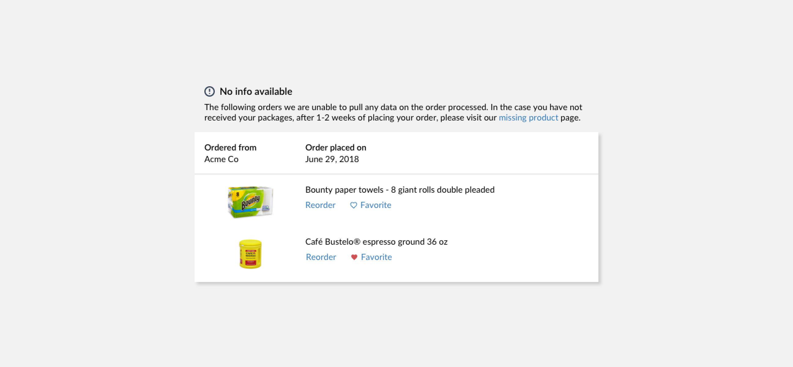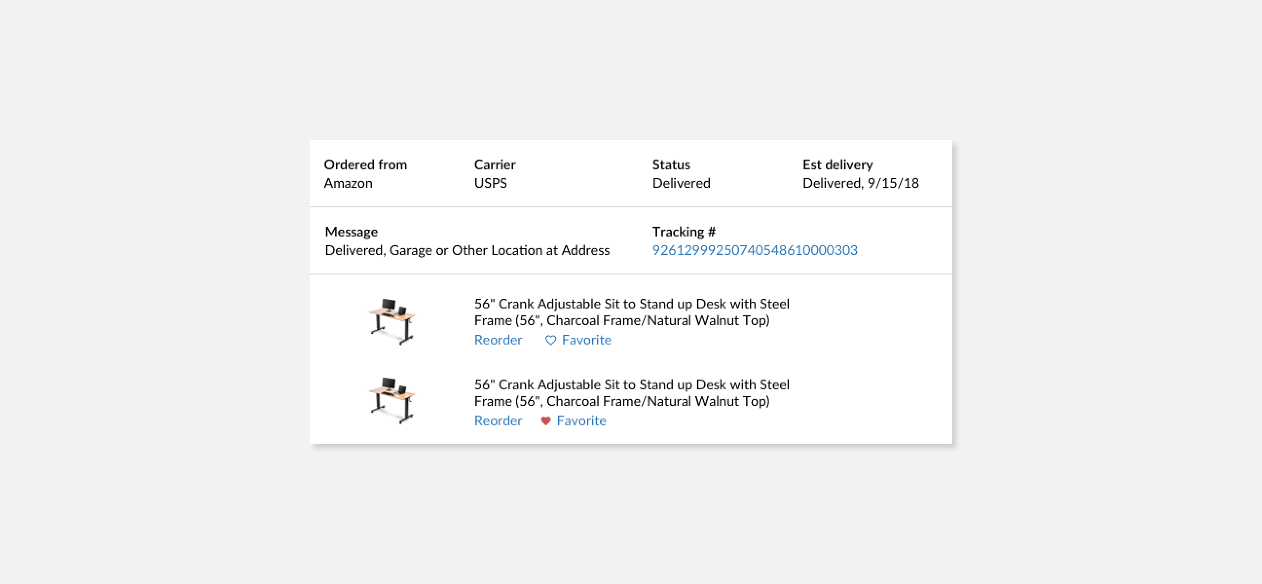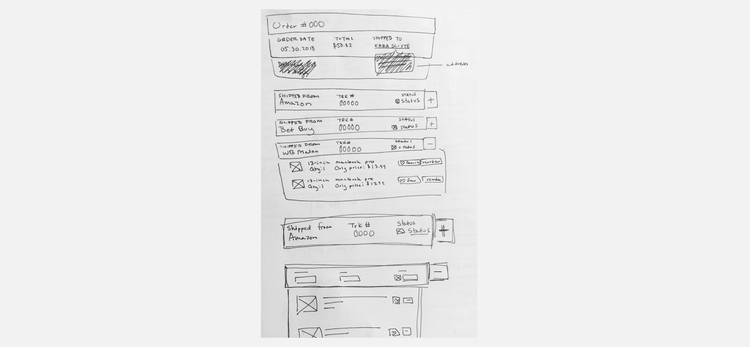 We noticed users had a poor experience tracking their packages. Our user interface did not clearly convey delivery date, status, or even what was in a specific order. The goal for this redesign was to clearly convey where orders were in transit, and communicate delivery times.