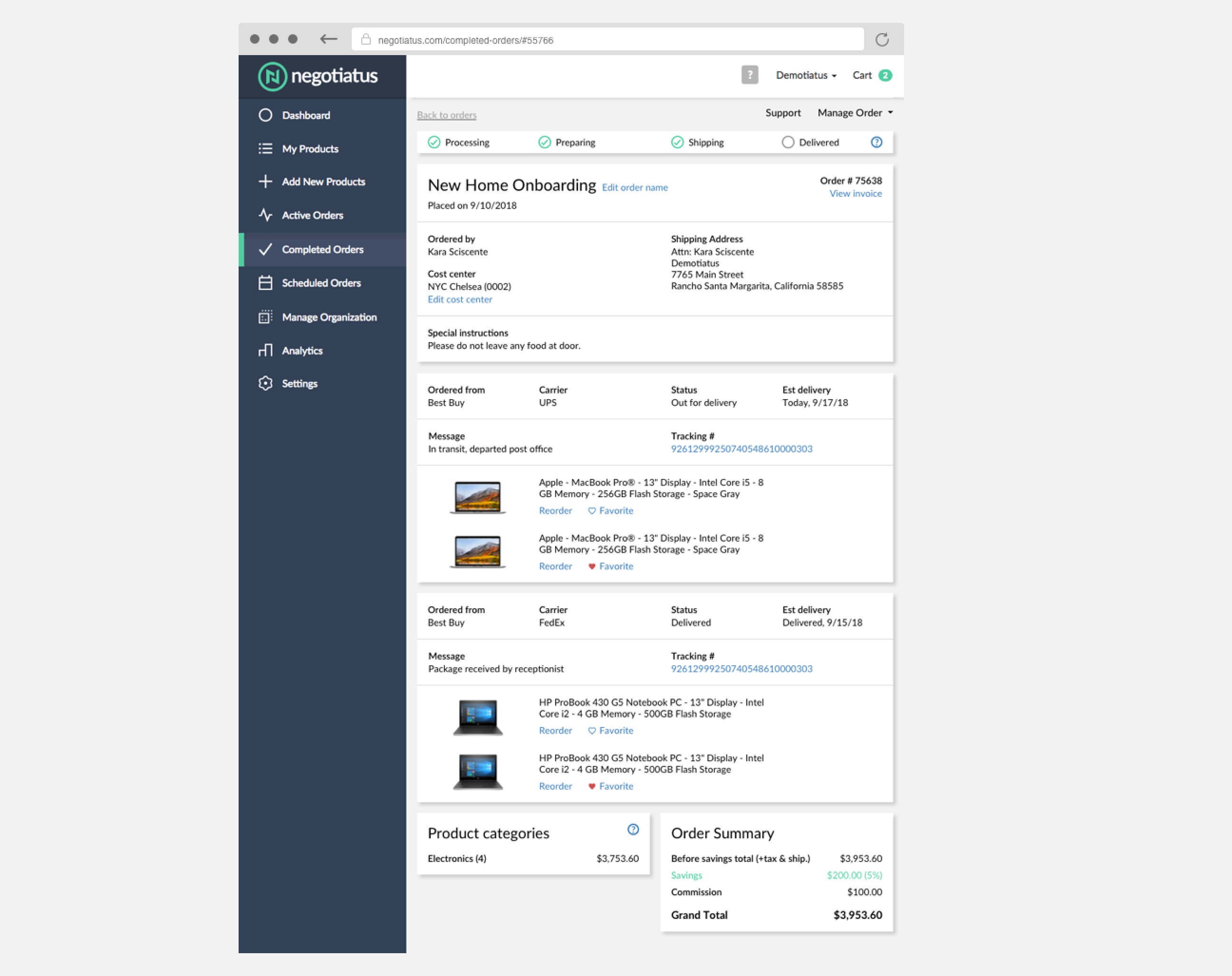 Remote part time freelance product designer for spend managment software Negotiatus. Worked with Product manager to improve user experience of order tracking and order history section of dashboard.